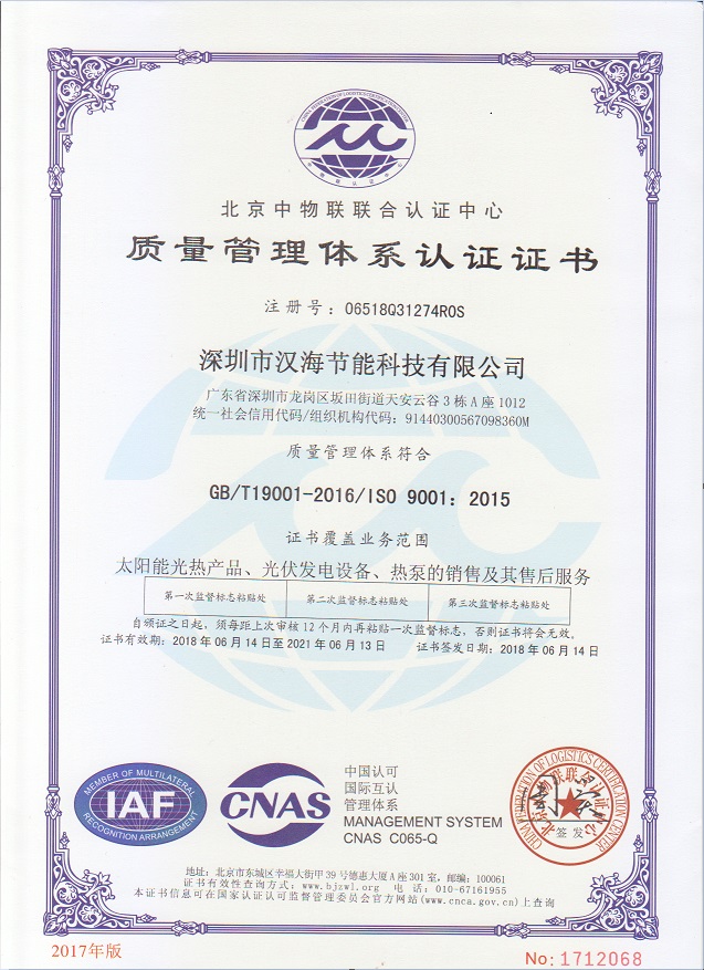 深圳市漢海節(jié)能科技有限公司成立于2011年,注冊(cè)資金6000萬元,總部設(shè)在深圳,是一家集設(shè)計(jì)、研發(fā)、施工于一體的專業(yè)化從事太陽能中央熱水工程、熱泵中央熱水工程、中央空調(diào)、光伏發(fā)電、水處理等新能源及節(jié)能環(huán)保行業(yè)的綜合服務(wù)商和工程商。在將近10年的發(fā)展歷程中,始終走在行業(yè)發(fā)展的前沿,是專業(yè)從事太陽能光熱、光伏,空氣源、太陽能熱水工程、水源熱泵,中央空調(diào),水處理產(chǎn)品的設(shè)計(jì)、安裝、售后服務(wù)為一體的高新技術(shù)企業(yè);是專業(yè)提供太陽能中央熱水工程、熱泵中央熱水工程、中央空調(diào)工程、光伏發(fā)電工程、水處理工程、太陽能熱水工程等全面解決方案的供應(yīng)商和工程商,產(chǎn)品涵蓋太陽能集熱器、空氣源熱泵、水源熱泵、中央空調(diào)、光伏組件、太陽能熱水工程等,是新能源的倡導(dǎo)者和推動(dòng)者。公司成立以來,始終秉承“誠(chéng)信、責(zé)任、專業(yè)、高效”的服務(wù)宗旨,以市場(chǎng)需求為導(dǎo)向,以為客戶創(chuàng)造價(jià)值為己任的精神,不斷開拓創(chuàng)新,通過多年的快速發(fā)展,公司綜合實(shí)力躍居行業(yè)前列。漢海擁有一支經(jīng)驗(yàn)豐富、善打硬仗的專業(yè)高效團(tuán)隊(duì);擁有一批專業(yè)的高級(jí)工程師、中級(jí)工程師、二級(jí)建造師、造價(jià)工程師、電氣設(shè)計(jì)師、給排水設(shè)計(jì)師;擁有一批機(jī)電、安防、水、電等專業(yè)技術(shù)施工和售后人員,配備先進(jìn)齊全,實(shí)力雄厚,技術(shù)領(lǐng)先。漢海以質(zhì)量樹信譽(yù)、以工藝立標(biāo)桿、以管理創(chuàng)效益、以服務(wù)得人心,工藝水平在業(yè)界獨(dú)樹一幟,成為行業(yè)模仿的典范。漢海承建的機(jī)電工程(設(shè)計(jì)、施工)涉及星級(jí)酒店、賓館、高檔辦公樓、花園別墅、住宅小區(qū)、學(xué)校、水療中心、工廠等各種類型的工程,工程項(xiàng)目遍布全國(guó)各地。漢海將致力于成為全球信賴的新能源綜合服務(wù)商,為客戶提供新能源的全方位解決方案。未來,漢海將依托國(guó)家政策,積極開拓粵港澳大灣區(qū)、中國(guó)特色社會(huì)主義先行示范區(qū)市場(chǎng)及“一帶一路”沿線國(guó)際市場(chǎng),推動(dòng)新能源的新輝煌。